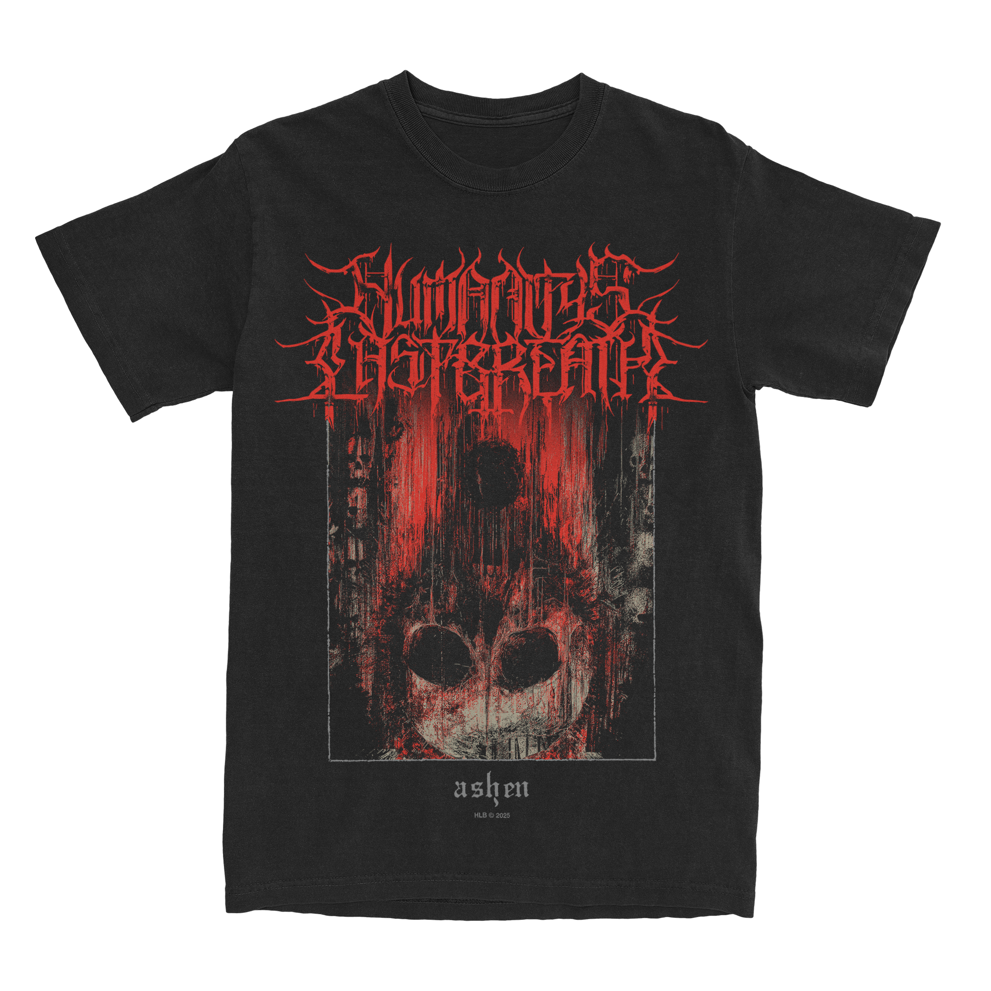 Starved design screen printed on black tee.